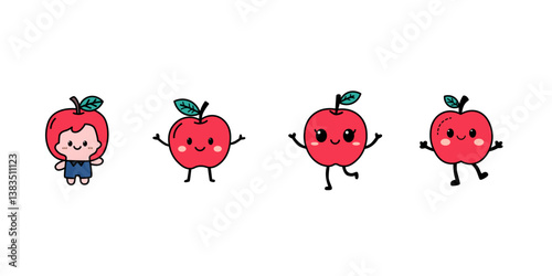 © mdpz art, Obraz premium vector illustration of hand drawn cute apple fruit cartoon character