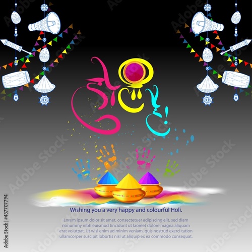 Fototapeta premium Vector illustration of Happy Holi greeting, written Hindi text means it's...