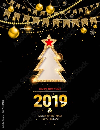 Naklejka premium Vector illustration of Happy New Year 2019.