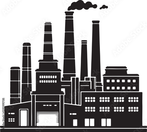 © Shukkur Ali 1, Obraz premium vector illustration of industrial factory, black silhouette vector