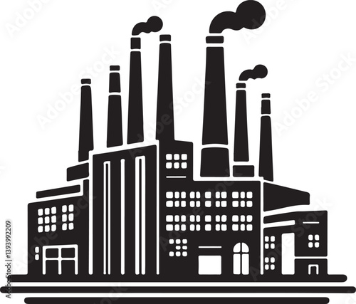 © Shukkur Ali 1, Obraz premium vector illustration of industrial factory, black silhouette vector