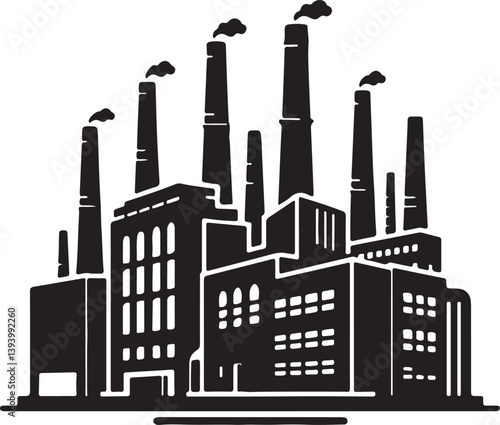 © Shukkur Ali 1, Obraz premium vector illustration of industrial factory, black silhouette vector