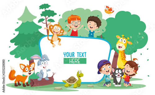 Fototapeta premium Vector Illustration Of Kids And Animals