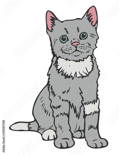 © Анастасия Ганева, Obraz premium Vector illustration of kitten. Hand drawn cat colored and depicted by a line.