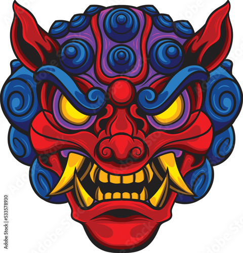 © harrisaputra, Fototapeta premium Vector illustration of komainu japanese lion