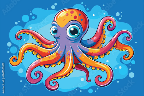 © Abu hamed shah, Obraz premium Vector illustration of octopus isolated on white background.