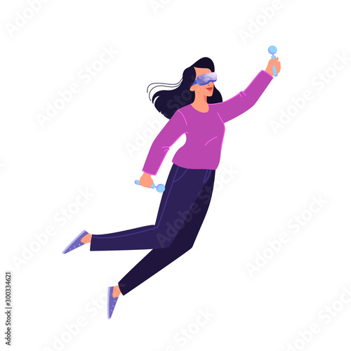 Fototapeta premium Vector illustration of person using a glasses of virtual reality. Concept of vr