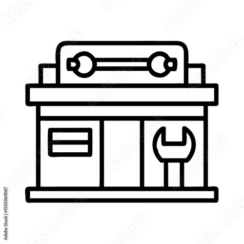 © David, Obraz premium Vector illustration of repair shop front view icon, isolated on white background