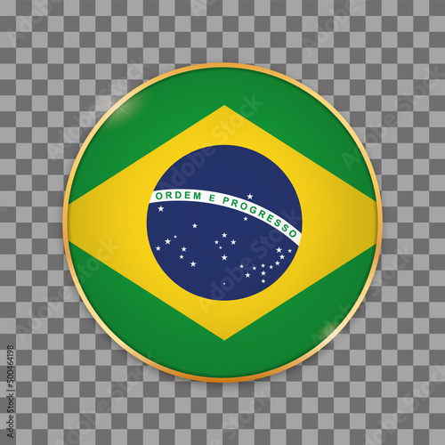 Obraz premium vector illustration of round button banner with country flag of Brazil