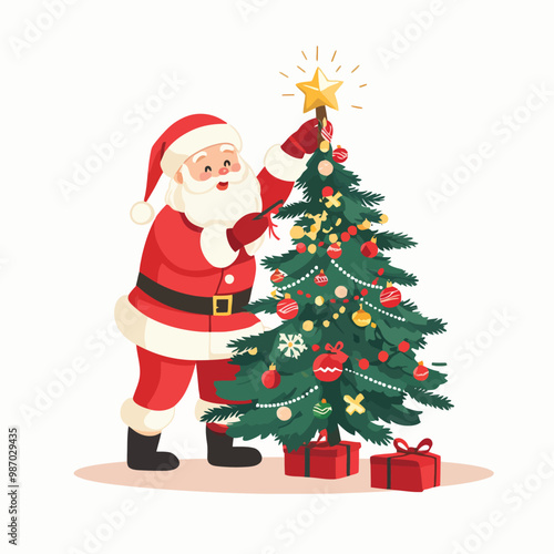 © Muhammad, Fototapeta premium Vector illustration of Santa Claus holding presents, perfect for holiday designs and festive themes