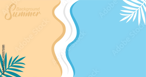 © Oktian07, Obraz premium Vector illustration of sea waves background in flat style. Summer banner template.