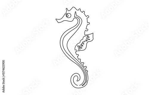 © shrabon2005, Naklejka premium Vector illustration of seahorse smiling underwater black and white drawing For , Vector illustration of seahorse isolated on white background.
