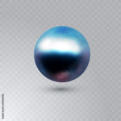 © mariaaverburg, Obraz premium Vector illustration of single shiny natural blue sea oyster pearl with light effects isolated on transparent background. Beautiful 3D shining realistic pearl for luxury accessories.