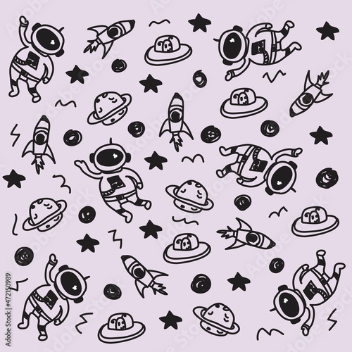 Fototapeta premium Vector illustration of space doodle seamless pattern