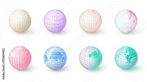 Fototapeta premium Vector Illustration of Striped 3D Globe Grid Spheres with Latitude and Longitude Line Grids