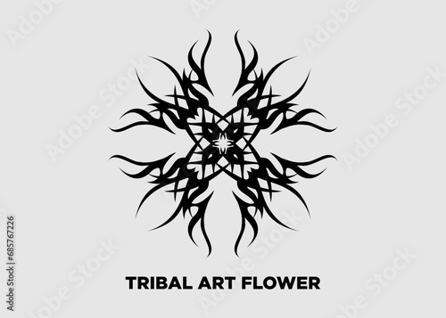 Fototapeta premium Vector illustration of symmetrical black floral tribal motif