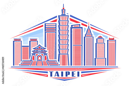 Obraz premium Vector illustration of Taipei, horizontal poster with linear design taipei...