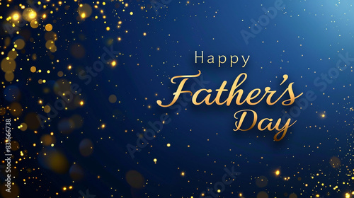 © Osama, Fototapeta premium Vector illustration of the text "Happy Father's Day" on a dark blue background with a blurred effect, in a golden color and white font style. The design is simple yet elegant
