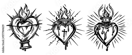 © Luka, Fototapeta premium vector illustration of three sacred hearts with flames