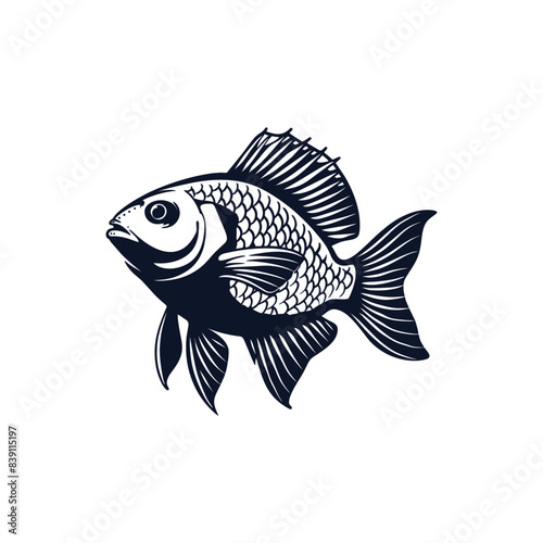 © Gendar SINURO, Obraz premium Vector illustration of Tilapia fish isolated on white background. Tilapia fish glyph icon. Badge for design seafood packaging. Logo Design for Fish Farming Business