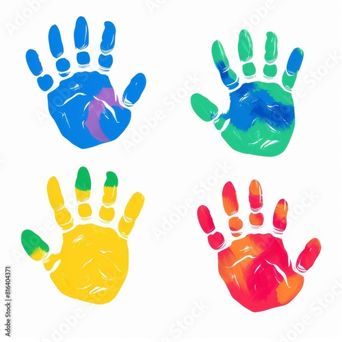 © CrazyJuke, Obraz premium Vector illustration of vibrant red handprints of a kid, Ai Generated