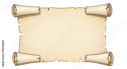 © Said Sbg, Fototapeta premium vector illustration open parchment scroll on white background