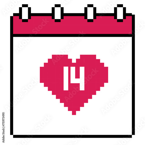 © Amonrat, Obraz premium Vector illustration pixel calendar heart date 14.
