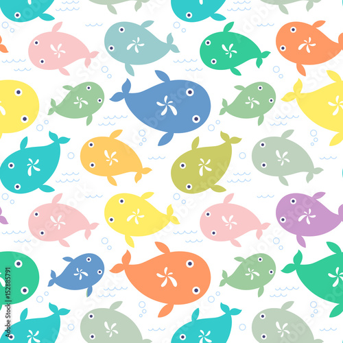 © sararoom, Obraz premium Vector illustration seamless pattern with whale