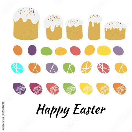 © Viktoriia, Fototapeta premium Vector illustration set design elements Easter traditional symbols collection- Easter cake and egg, Happy Easter greeting card in pastel color on white