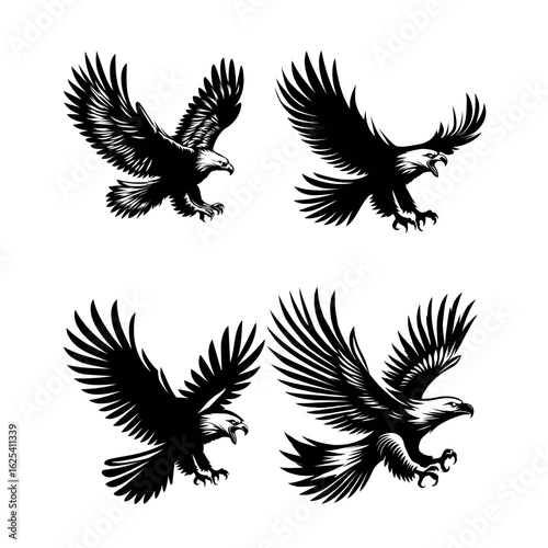© Sisir2367, Obraz premium vector illustration Set of bald eagle silhouette,