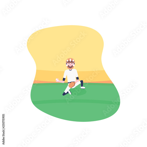 Fototapeta premium Vector Illustration. Set of baseball cartoon players: catcher, pitcher in modern flat style. Baseball equipment icon. Baseball characters team. Game moments