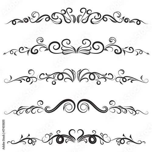 © kedsirin, Obraz premium vector illustration set of border calligraphic and dividers decorative