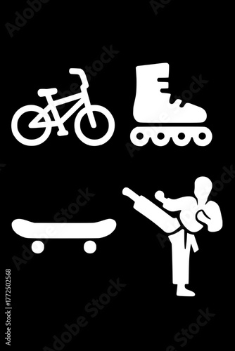 Fototapeta premium vector illustration sketchbook, bicycle, roller skates and karate
