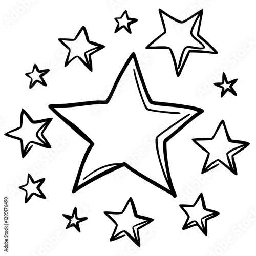 Obraz premium Vector Illustration Starry Night Pattern Black Outline Design