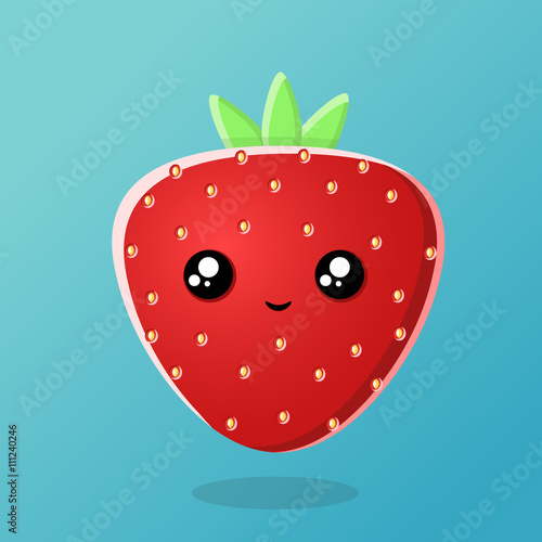 © Hutsy 'K Bo, Obraz premium Vector Illustration. Strawberry, kawaii, cartoon style. The expression of emotions for design, art work, design cards and web pages.