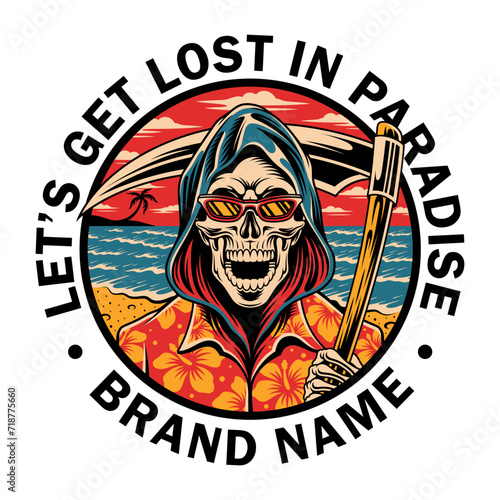 © mukhlis, Naklejka premium Vector illustration surf themed skull