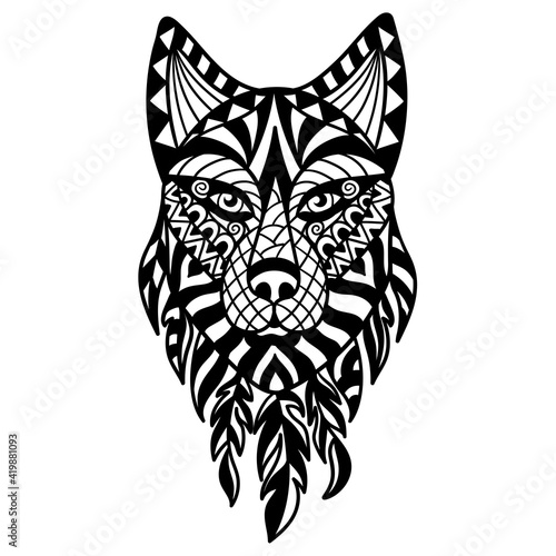 © Elvira, Obraz premium Vector illustration with a wolf's head, for tattoos