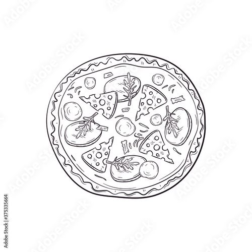 Fototapeta premium Vector illustration with hand drawn pizza.