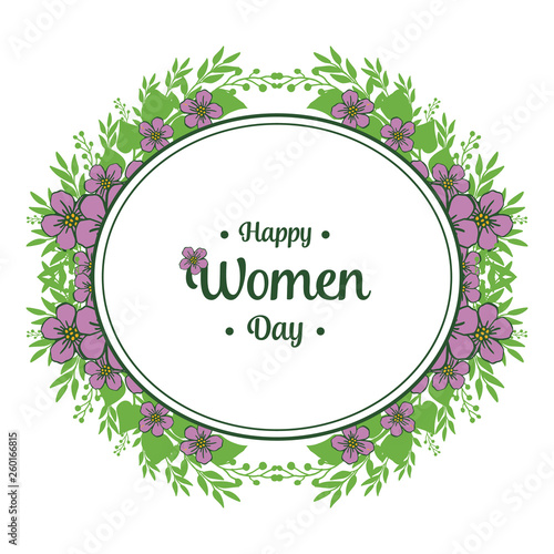 Obraz premium Vector illustration writing happy women day with decor purple wreath frame