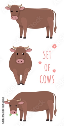 © Анастасия Власова, Obraz premium Vector illustrations of cows in different positions isolated on a white background in cartoon style.