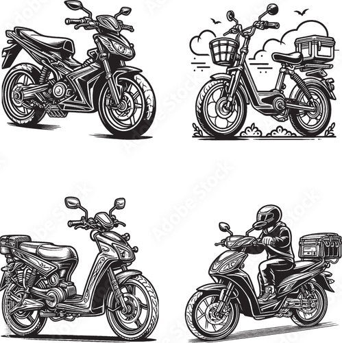 Obraz premium "Vector Illustrations of Motorcycles and Scooters - High-Quality Stock...