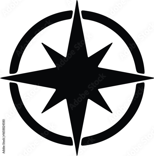 Obraz premium Vector Illustrator Nautical compass rose navigation symbol simple Silhouette