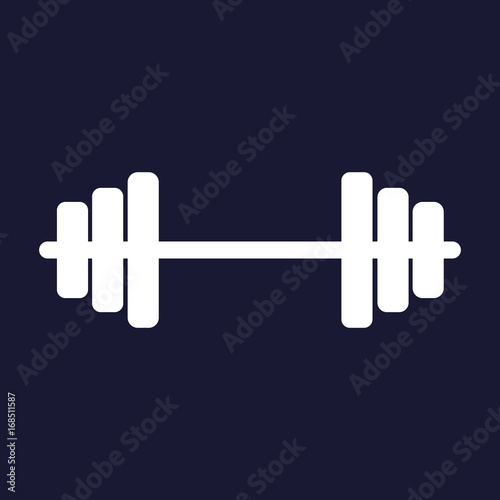Obraz premium Vector image dumbbells. White vector icon on dark blue background.