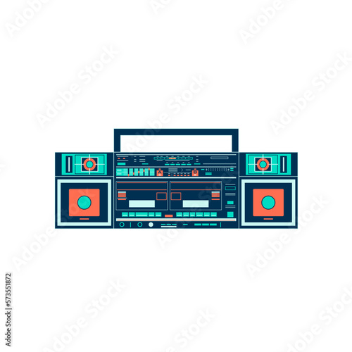 Obraz premium Vector image of a classic Boombox or Ghetto Blaster. Inspired by the JVC PC-W330 JW model in turquoise and orange