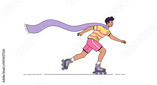 © Сергей Гаранин, Obraz premium Vector image of a guy with a long scarf rollerblading