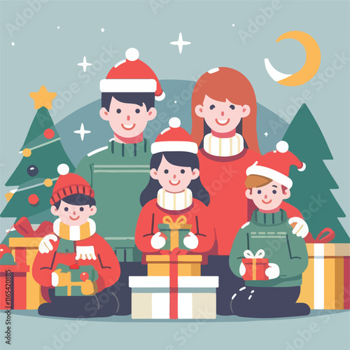© Gusti Aji, Fototapeta premium vector image of family photo on Christmas day