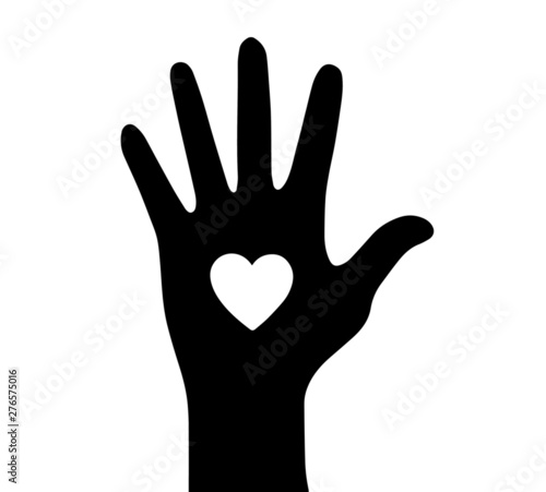 © a_v_4min, Fototapeta premium Vector image of palm silhouette with white heart inside