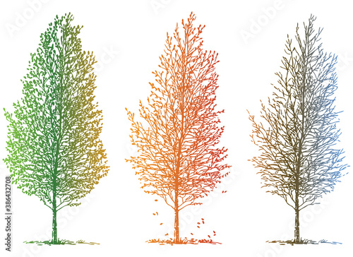 © makar, Fototapeta premium Vector image of sketches deciduous tree in different seasons