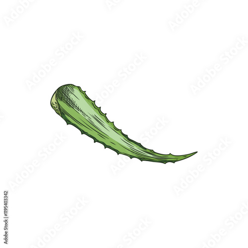 Naklejka premium Vector image with a green prickly leaf of vitamin-rich aloe vera plant in sketch style