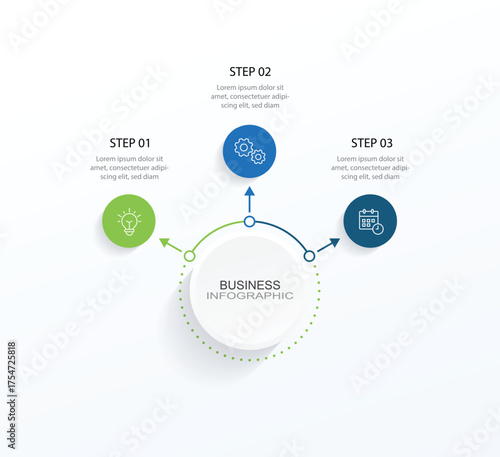© ARSIDI, Fototapeta premium Vector Infographic label design template with icons and 3 options or steps. Can be used for process diagram, presentation.